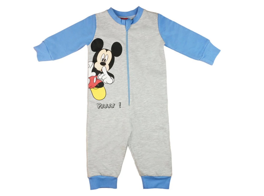 A Disney Mickey belül bolyhos overálos pizsama a kisfiúk álma. A szürke alapszínű pizsama vidám Mickey egér mintával van díszítve, ami garantáltan azonnal elvarázsolja majd a kicsiket. A pizsama eredeti Disney termék, így a minőségével kapcsolatban sem kell aggódnia. A belül bolyhos kialakításnak köszönhetően pedig extra puha és kényelmes viseletet biztosít a picik számára. A pizsama 65% pamutból és 35% poliésztérből készült, így nem csak kényelmes, de könnyen kezelhető is. A termék minősége I. osztályú, így biztos lehet benne, hogy hosszú ideig szolgálja majd gyermekét. A megadott méret az életkorra vonatkozik, így könnyedén megtalálhatja a tökéletes darabot gyermekének.