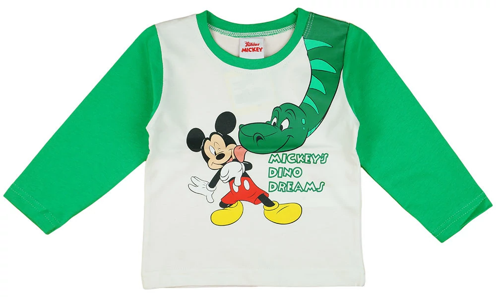 Merüljön el Mickey Egér varázslatos világában a kisfiával ezzel a stílusos, hosszú ujjú pólóval. A pólót díszíti a mindig vidám és kalandra kész Mickey Egér dinoszauruszos grafikája, ami garantáltan mosolyt csal a kisfiú arcára. A fehér színű pólót Magyarországon gyártották, biztosítva a kiváló minőséget és tartósságot. A 100% pamut anyaga pedig biztosítja a kényelmet és a könnyű moshatóságot. Az eredeti Disney termék garantálja a hiteles Mickey mintát. A hosszú ujj ideális választás a hűvösebb napokra. Tökéletes ajándék minden kis Disney rajongónak!