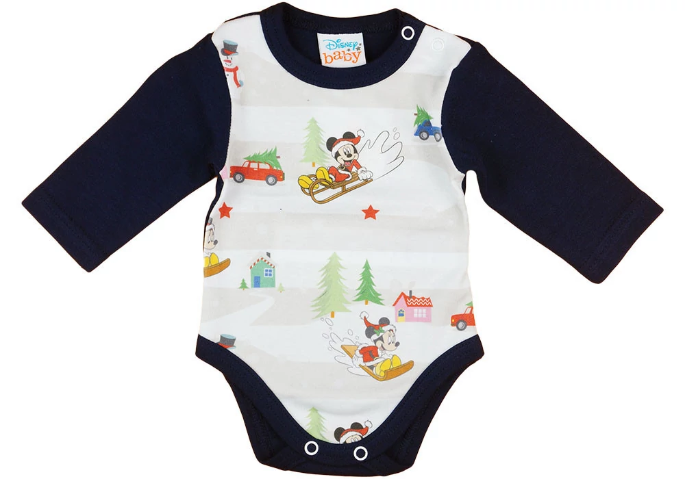 Disney Mickey és Minnie karácsonyi hosszú ujjú baba body kék