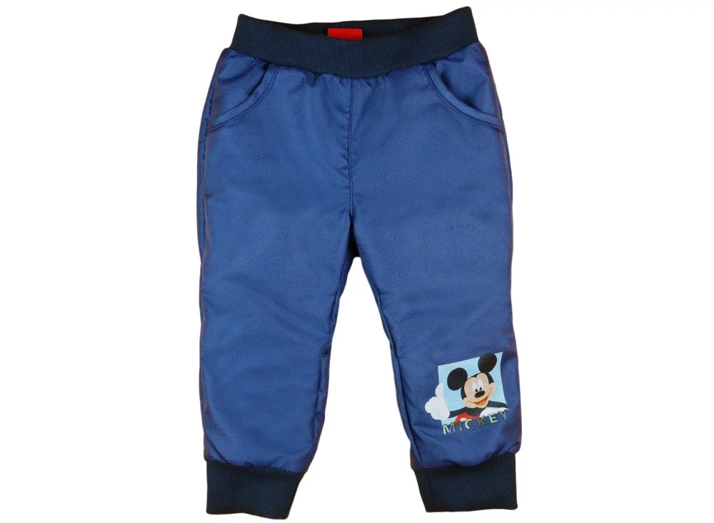 Elején Mickey mintával nyomott, passzés, gumis derekú, zsebes, bélelt, vízlepergetős fiú nadrág