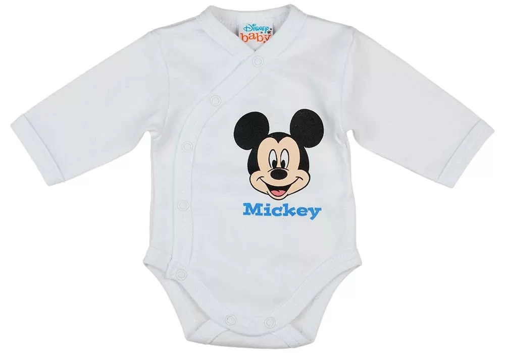 Disney Mickey egeres hosszú ujjú baba body. A pamut body a mese jellegzetes figuráját eleveníti meg. Disney Mickey rajongók ruhatárának kihagyhatatlan darabja. A végig patentokkal készült body kényelmes, könnyű öltöztetést és pelenkázást segíti a babánál, a kombidressz teljesen kinyitható.Magyar termék.