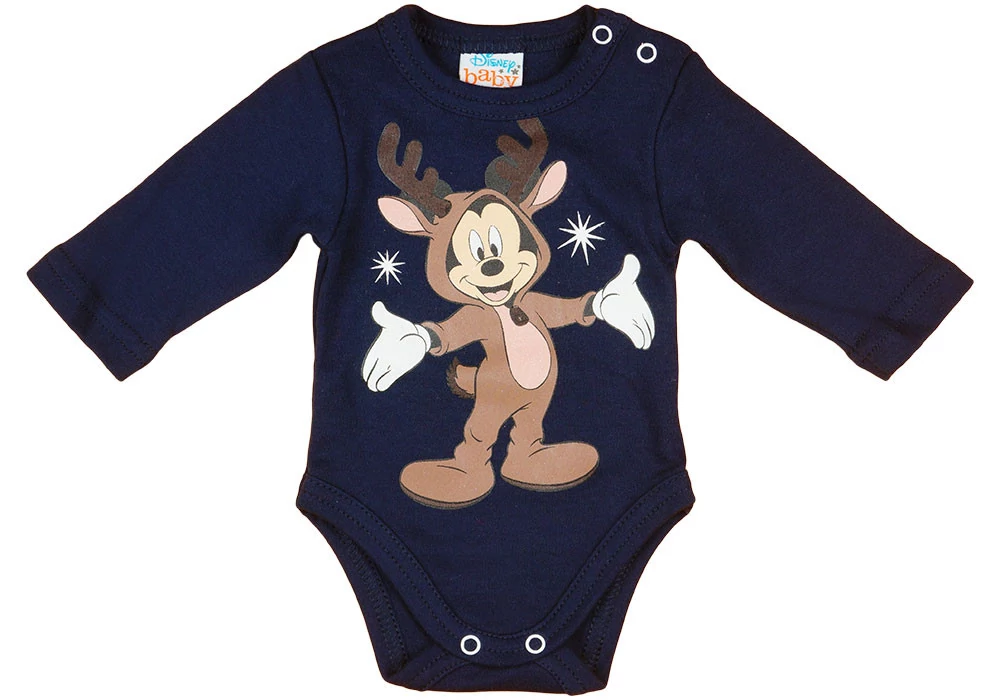 Tedd ünnepivé babád karácsonyát ezzel a sötét kék színű, hosszú ujjú bababody-val, amelyet a Disney különleges Mickey mintája díszít. A minta nem más, mint a kedves Mickey, aki rénszarvassá változva izgatottan várja a karácsonyt. A vállon található patentok segítségével könnyen fel- és le lehet venni a bodyt, így a pelenkázás is gyerekjáték lesz. Ez a minőségi magyar termék 100% pamutból készült, amely kényelmes viseletet biztosít a babának, miközben bőre szabadon lélegzik. Az I. osztályú anyag garantálja a termék tartósságát és színének megőrzését, még a leggyakoribb mosás után is. Ajándékozd meg babád ezzel a bájos karácsonyi bababody-val, amelyet a Disney tervezett neki!
