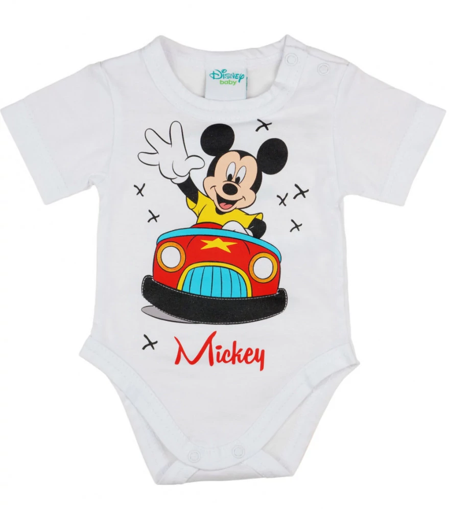 Egy igazi kis Disney rajongónak elengedhetetlen a gardróbja számára ez a rövid ujjú Mickey egeres body, ami tökéletes választás a meleg nyári napokra. A fehér színű, rövid ujjú body kiváló minőségű, 100% pamutból készült, hogy biztosítsa a kisfiúk kényelmét és szabad mozgását. A vállánál praktikus patentok segítik a könnyű öltözködést. A body magyarországi származású, ami garancia a kiváló minőségre. A kedves Mickey egér minta pedig garantáltan mosolyt csal az arcokra! Minőségi első osztályú magyar termék.