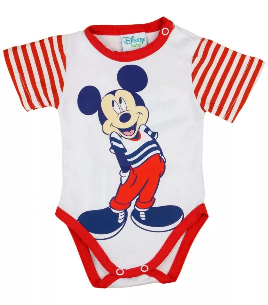 Disney Mickey egeres rövid ujjú pamut body. A pamut body a mese jellegzetes figuráját eleveníti meg. Disney Mickey rajongóknak kihagyhatatlan. Magyar termék.