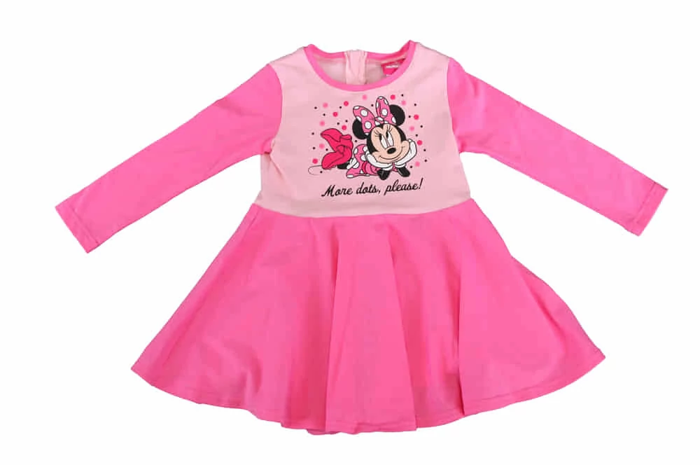 Disney Minnie hosszú ujjú lányka ruha Eredeti Disney termék Felső részén Minnie mintával, nyomott, hosszú ujjú pamut kislány ruha, pörgős szoknyarésszel. Csinos és kényelmes ruha, aminek szoknyarésze igazán pörgős, így kislányunk imádni fogja. Hétköznapokra és alkalmakra is bátran ajánljuk! Anyaga minőségi, könnyű nyári pamut anyag, ami jól bírja mosást, szín- és formatartó. Minőségi magyar termék Anyaga: 90% pamut, 10% elasztán Minőség: I. osztály
