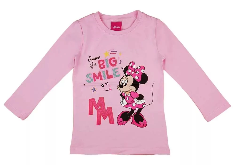 Disney Minnie gyerek hosszú ujjú póló, felső. A gyerek póló, felső finom tapintású, kényelmes pamut anyagból készült, mintázata anyagba nyomott, tartós nyomású. A hosszú ujjú lányka pólón Minnie egér részletgazdagon kidolgozott mintája szerepel. Eredeti Disney ruházat, magyar termék.
