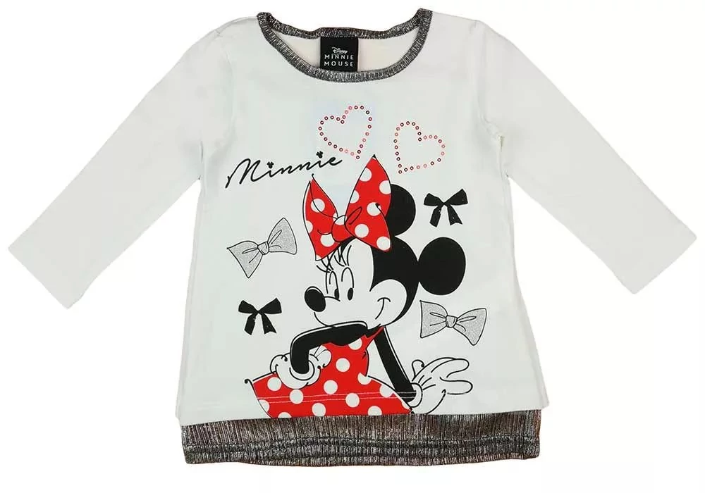 Disney Minnie gyerek hosszú ujjú tunika. A gyerek tunika finom tapintású, kényelmes pamut anyagból készült, mintázata anyagba nyomott, tartós nyomású, alja fodrokkal díszített. A hosszú ujjú lányka tunikán Minnie egér részletgazdagon kidolgozott mintája szerepel. Eredeti Disney ruházat, magyar termék.