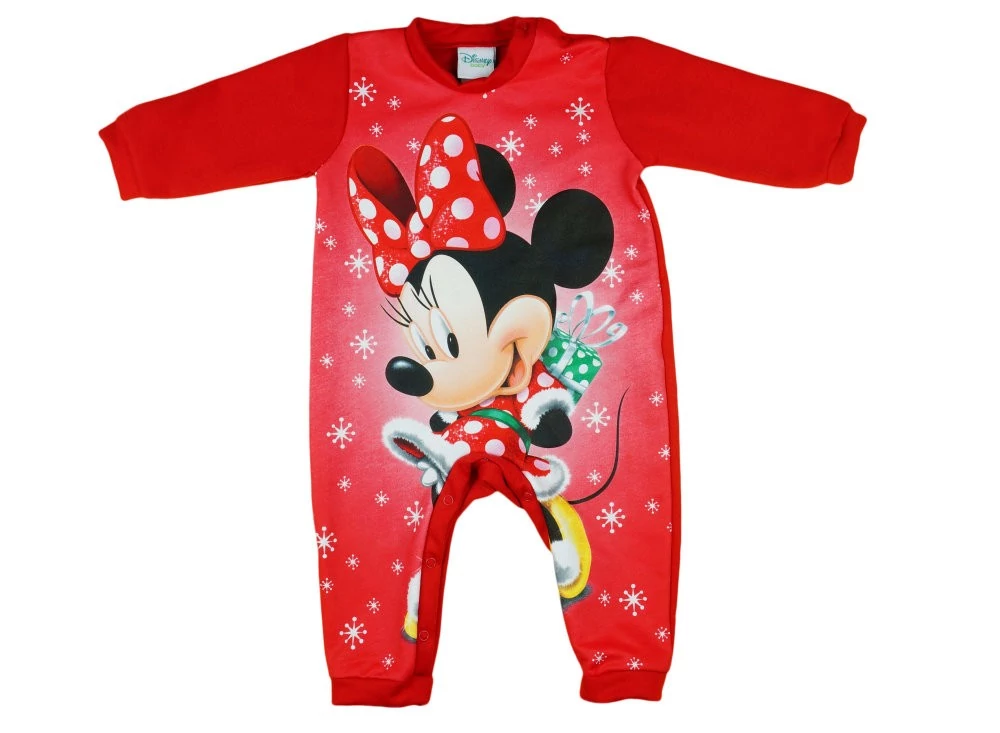 Minnie Mikulás mintával nyomott, belül bolyhos, vállon patentos hosszú ujjú rugdalózó. LÁBFEJ NÉLKÜLI