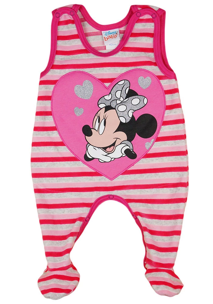 Disney Minnie plüss ujjatlan rugdalózó. A baba ujjatlan rugdalózó finom pihe-puha plüss anyagból készült, mintája anyagba nyomott, tartós Minnie egér karakterével készült. A könnyű öltöztetést elősegítendően az ujjatlan rugdalózó vállon patentos. A termék nem tartalmaz nikkelt, az ujjatlan rugdalózónál használt patentok nikkelmentesek, így nem okoznak allergiás reakciót az arra érzékeny babáknál. Minnie egér rajongóinak ruhatárából kihagyhatatlan baba rugdalózó. Magyar termék.