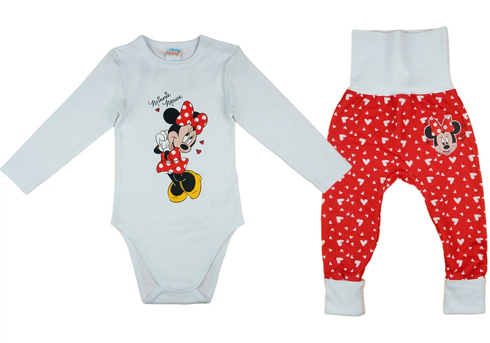 Egy igazán különleges, 2 részes Disney Minnie szívecskés baba szett, melynek minden részlete a legapróbbak kényelmét és stílusos megjelenését szolgálja. A szettben található vállon patentos, hosszú ujjú kombidressz Minnie egér motívumával és a hozzá illő, felhajtható passzés baba nadrág, melyen Minnie minta díszeleg, valamint egy rávarrt folt található a fenekénél, igazán egyedi és különleges megjelenést kölcsönöznek a kisviselőjének. A 2:1 méret pedig praktikus megoldást kínál a gyorsan növekvő babáknak. A termék minőségi magyar munka, mely garantálja a tartósságot és az elsőosztályú anyaghasználatot. Anyaga 100% pamut, míg a nadrág anyaga 90% pamut és 10% elasztán, ami biztosítja a rugalmasságot és a kényelmet a mindennapi viselés során. Engedd, hogy kicsi lányod a Disney varázslatos világában találja magát ebben a bájos és kényelmes szettben!
