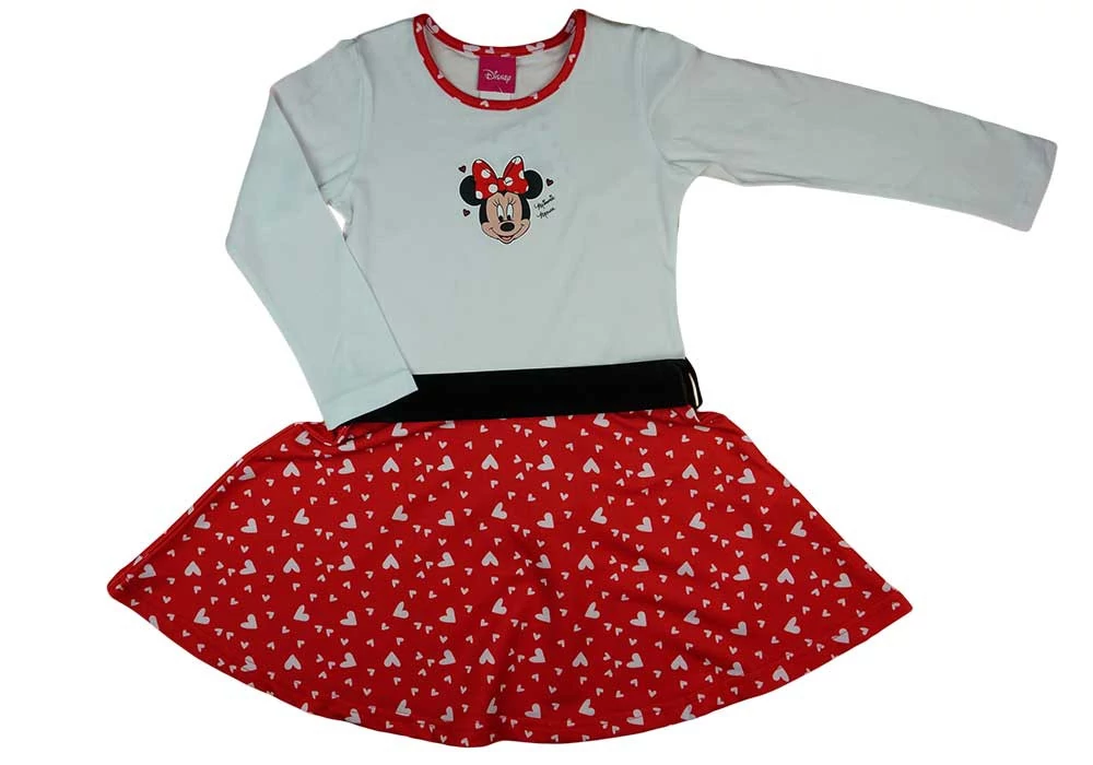 Csupa szív és varázslat ez a fehér, hosszú ujjú derékszalagos Disney ruha, amelyet a legcukibb Minnie egér mintával díszítettünk. Könnyű, légies és játékos viselet, mely minden kis hercegnőt elbűvöl. A ruha derekánál található szalag pedig különleges, bájos részletet ad az összképnek. Az anyagának 90%-a pamut, így garantáltan puha, kényelmes és bőrbarát viseletet biztosít a kicsiknek. Az extra rugalmasságról a 10% elasztán gondoskodik, így a ruha tökéletesen alkalmazkodik a gyermek mozgásához. Egy eredeti Disney termék, melyet Magyarországon készítettek, így minőségi, első osztályú anyagból született. Hódítsátok meg ti is Minnie egérrel a mindennapokat!