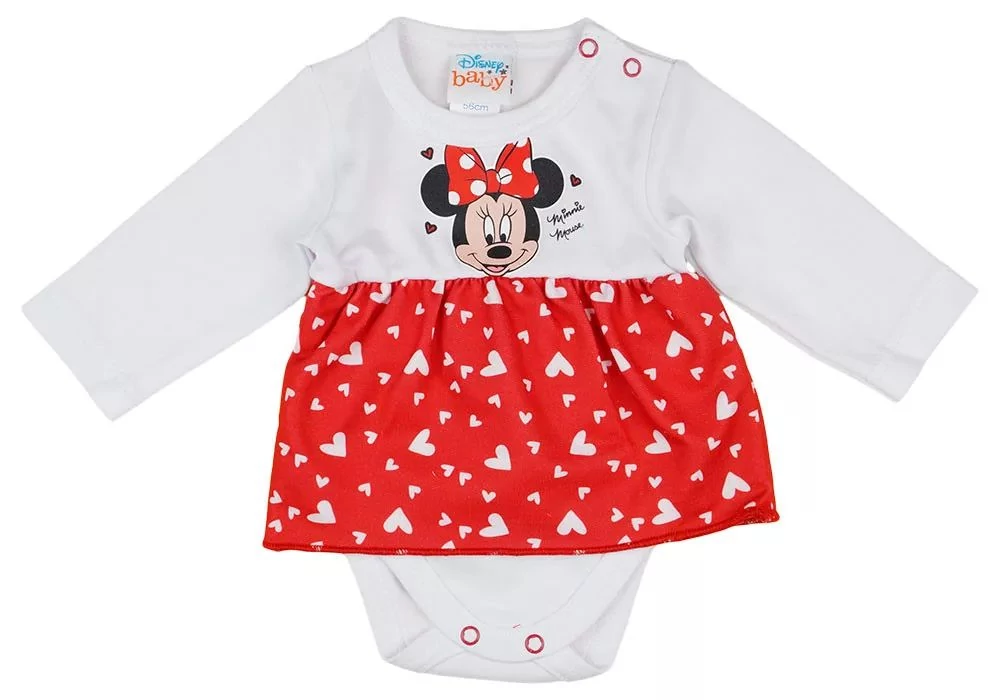 Disney Minnie egeres szoknyás baba body. A pamut body a mese jellegzetes figuráját eleveníti meg. Disney Minnie rajongók ruhatárának kihagyhatatlan darabja. Magyar termék.