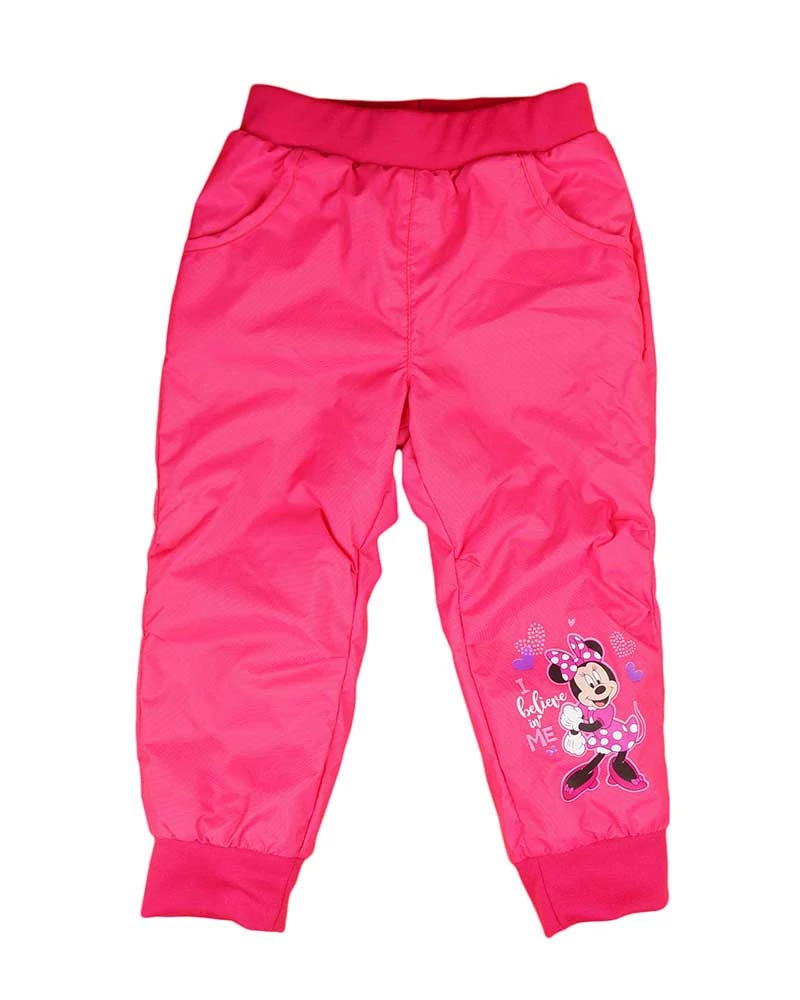 Kiemelkedő minőségű, magyar termék, amit a kicsi Disney rajongók imádni fognak! A rózsaszínű, vízlepergetős nadrág belül puha polár béléssel rendelkezik, így tökéletes választás a hidegebb napokra. A nadrág oldalán található zsebek praktikus tárolóhelyet biztosítanak a kicsik számára. De ami igazán különlegessé teszi ezt a nadrágot, az a Minnie egér minta, amit a Disney rajongók azonnal felismernek. Anyaga 100% poliészter, így könnyen tisztítható és tartós. Érezd a Disney varázslatot minden nap!
