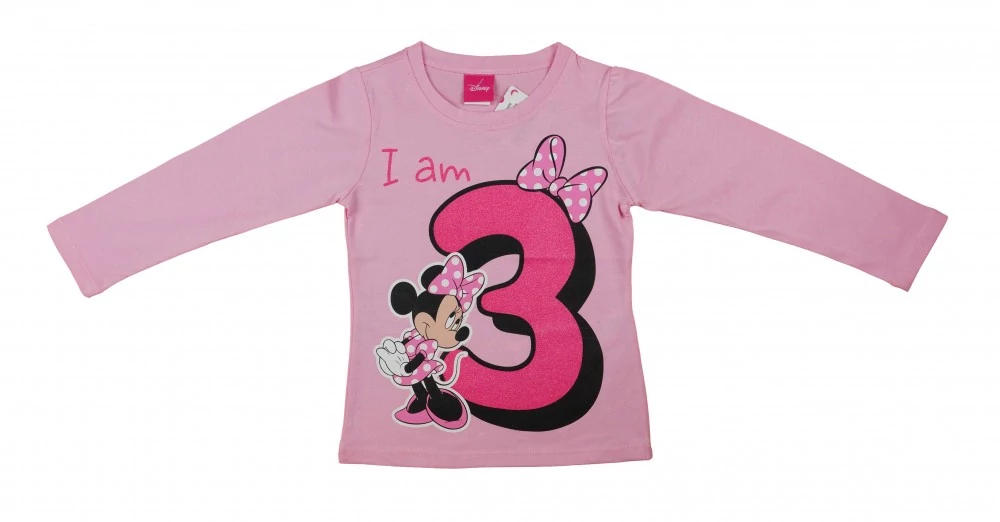 Disney Minnie szülinapos hosszú ujjú póló 1 év Minnie mintával nyomott glitteres, szülinapos (" 3 éves vagyok " angol felirattal) hosszú ujjú póló Anyaga: 100 % pamut Minőség: I. osztály Gyártó: Asti, Magyarország A termékeknél megadott életkor irányadó!
