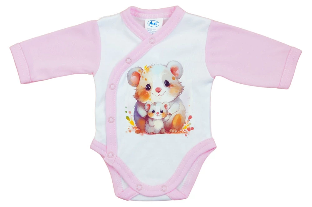 Elöl patentos hosszú ujjú baba body Erdő állatai mintával