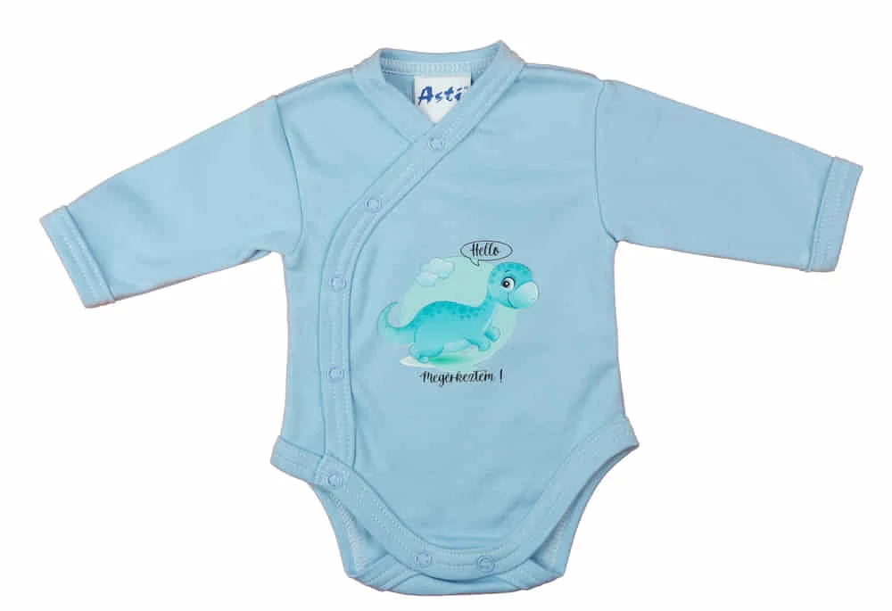 A "Hello megérkeztem" mintával ellátott, elöl patentos, hosszú ujjú baba body tökéletes választás lehet a legkisebbek számára. Az élénk világoskék színű ruha nem csak a szemnek gyönyörködtető, de a 100% pamut anyagának köszönhetően rendkívül kényelmes is. Minőségi magyar termék, amely garantálja a tartósságot és a hosszú élettartamot. Az I. osztályú minőségnek köszönhetően a baba bőre szabadon lélegezhet, míg a nikkelmentes patentok biztosítják, hogy a ruha semmilyen allergiás reakciót ne válthasson ki. A "Hello megérkeztem" felirat pedig tökéletes módja annak, hogy bejelentsük a világnak a legújabb családtag érkezését.