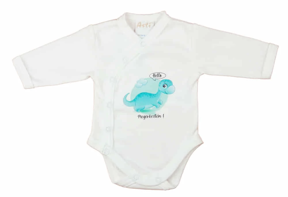 Elöl patentos hosszú ujjú baba body "Hello megérkeztem" mintával