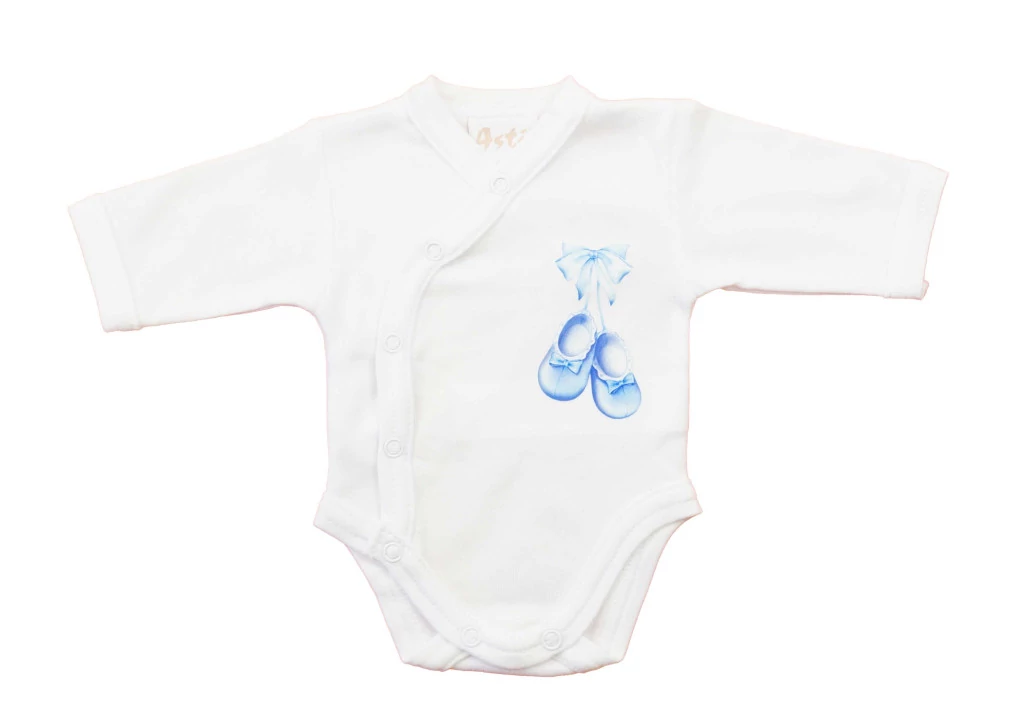 Elöl patentos hosszú ujjú baba body – Kis cipő mintával