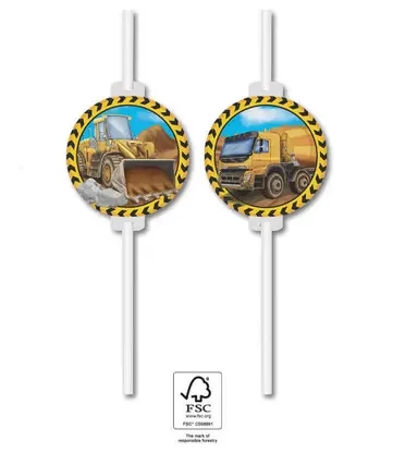 Construction, Építkezés papír szívószál, 4 db-os szett FSC