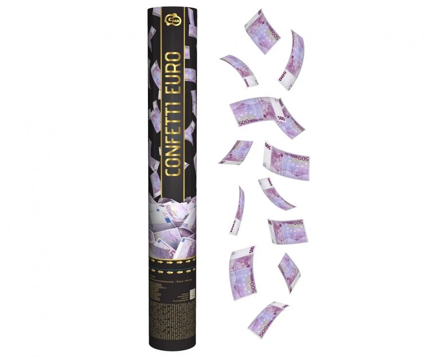 A henger alját a nyíl irányában elforgatva, konfettiket lövell ki.