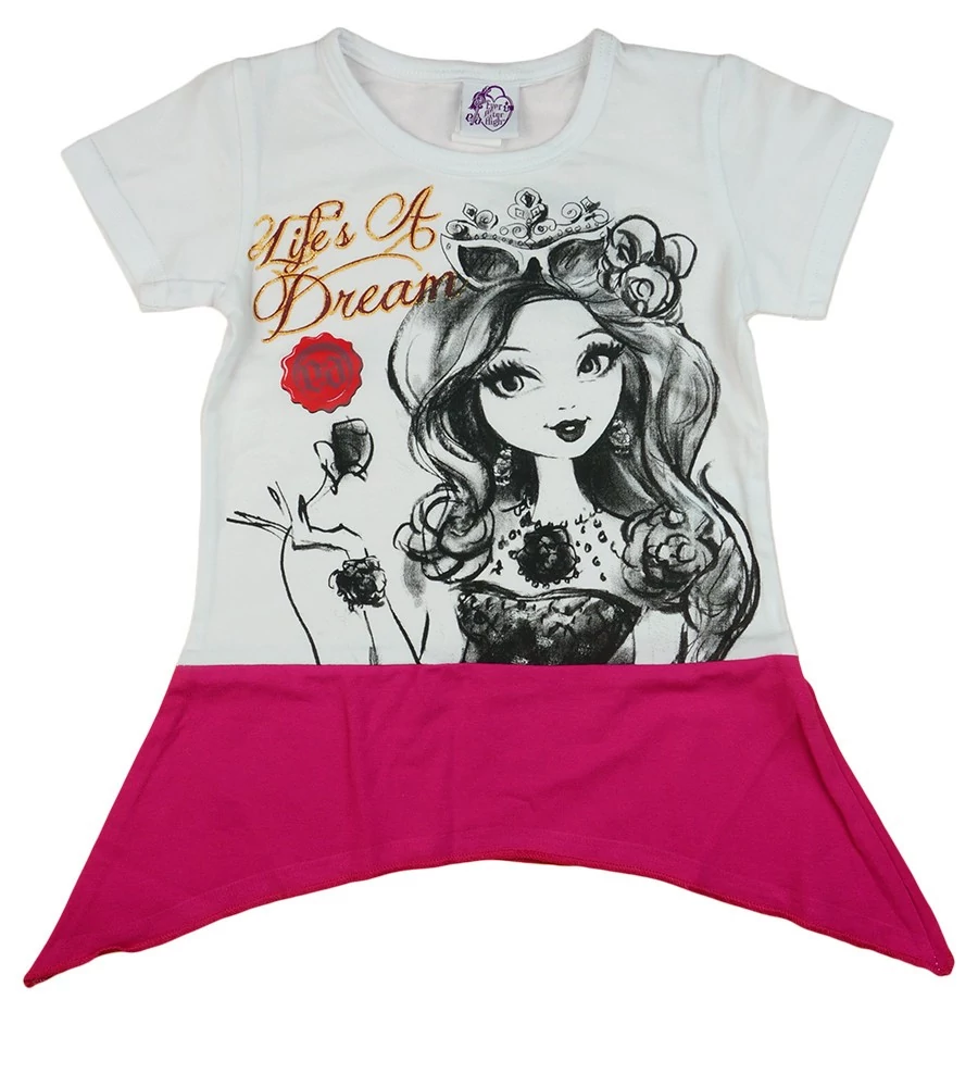 Kiemeld a lányod stílusát ezzel a csodálatos Ever After High tunikás felsővel, amelyet eredeti Mattel termékként Magyarországon készítettek. A nagy nyomással díszített fazon különleges és egyedi megjelenést kölcsönöz, így a lányod biztosan kitűnik a tömegből. A felső anyaga 95% pamut és 5% elasztán, amely garantálja a kényelmet és a tartósságot is. Az I. osztályú minőség biztosítja, hogy a felső hosszú ideig megőrzi szépségét és funkcióját. A termék a lányok számára ideális választás, és az ajánlott életkor irányadó. Tündököljön a lányod ebben a bájos és divatos Ever After High tunikás felsőben!