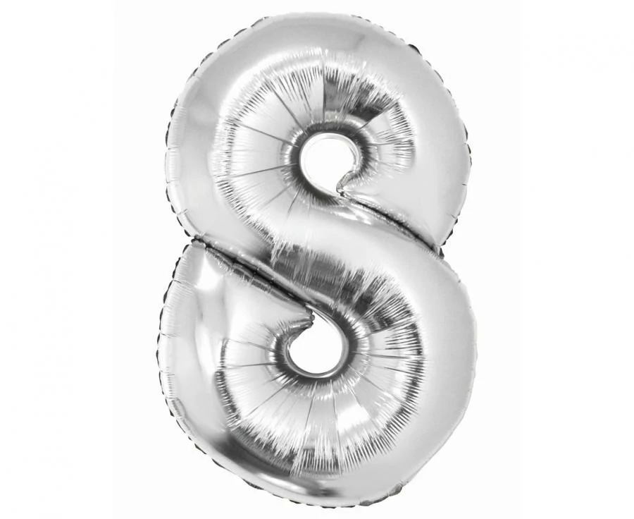 Ezüst 8-as Silver szám fólia lufi 76 cm
