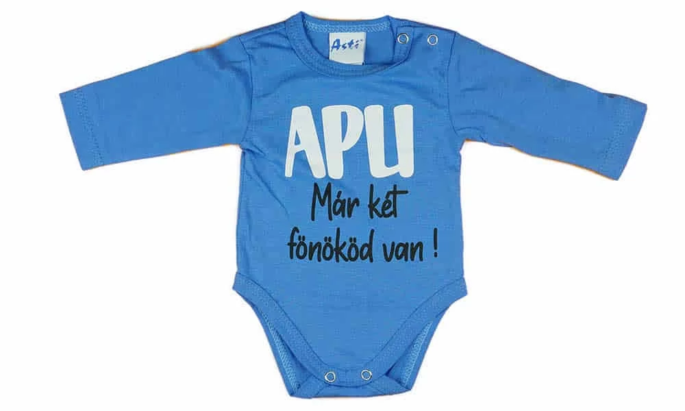 Öltöztesse babáját ebben a közepesen kék színű, feliratos hosszú ujjú bodyban, amely a legkisebbek kényelmét szem előtt tartva készült. A vállon elhelyezett patentok segítségével könnyedén fel- és levehető, így a pelenkázás is gyerekjáték lesz. A 100% pamut anyag biztosítja a puhaságot és a hosszan tartó komfortot, amire a babák bőre szüksége van. Ez a minőségi magyar termék az Andrea Kft. gondos kezei alatt készült, és az I. osztályú minősítésének köszönhetően biztos lehet benne, hogy a legjobbat választja gyermekének. A termékben felhasznált patent nikkelmentes, így a nikkelre érzékeny babák bőrét sem irritálja.