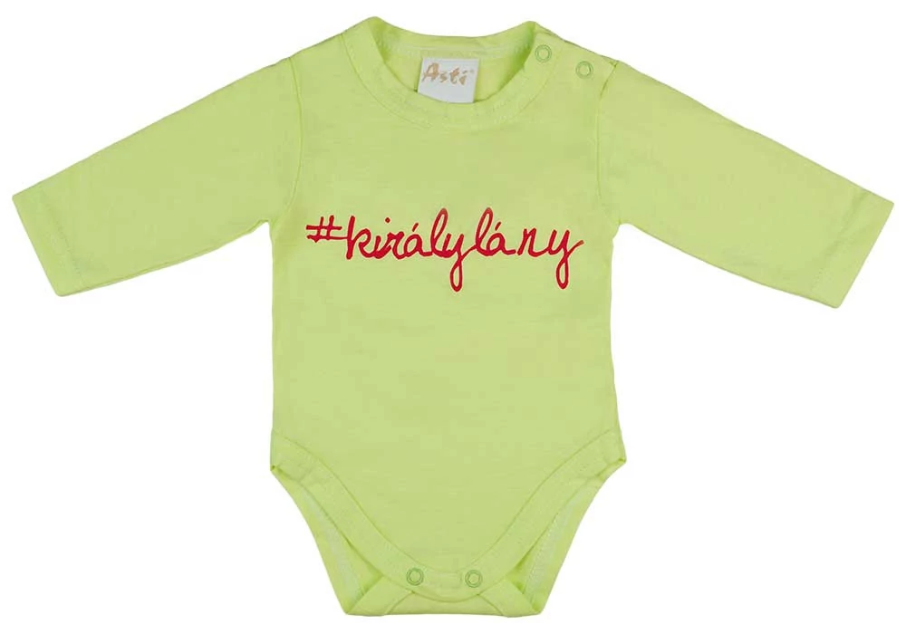 Kedves kisbabának keresel egy kényelmes body-t, ami nem csak jól néz ki, hanem minőségi is? Akkor a feliratos hosszú ujjú baba body-t neked találtuk ki! A baba body zöld színe igazán vidám, a felirat pedig különleges és egyedi megjelenést kölcsönöz a ruhának. A body anyaga 100% pamut, amely lágyan simul a baba bőréhez, nem okoz irritációt, és könnyen tisztítható. A vállon található patentoknak köszönhetően a fel- és levétel is gyerekjáték lesz. A minőségi magyar terméket az Andrea Kft., elkészítette, így biztos lehetsz benne, hogy egy olyan terméket vásárolsz, amit szeretettel és gondossággal készítettek. A body nikkelmentes patenttal készült, így az erre érzékeny babák is nyugodtan viselhetik. A kisbabák bőre érzékeny és könnyen irritálódik, ezért fontos, hogy olyan ruhákat válasszunk számukra, amelyek nem tartalmaznak allergén anyagokat. Öltöztesd a kisbabádat kedves, minőségi és kényelmes ruhába, válaszd a feliratos hosszú ujjú baba body-t!