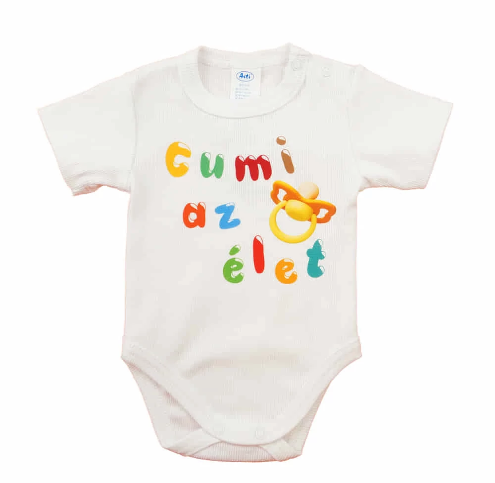 Feliratos rövid ujjú baba body Ezzel a vállon patentos baba bodyval a kisbabád mindig stílusos lesz. A body feliratos, ami egyszerre vicces és aranyos. A nikkelmentes patentoknak köszönhetően nem kell aggódnod az allergiás reakciók miatt. Gondosan tervezett és készített termék, így biztos lehetsz benne, hogy a legjobbat kapod. A minőségi magyar termék, ami tökéletes választás minden unisex babáknak. Tökéletes választás, ha szeretnél egy igazán minőségi és kényelmes ruhadarabot a babádnak. Minőségi magyar termék Anyaga: 90% pamut – 10% lycra Minőség: I. osztály
