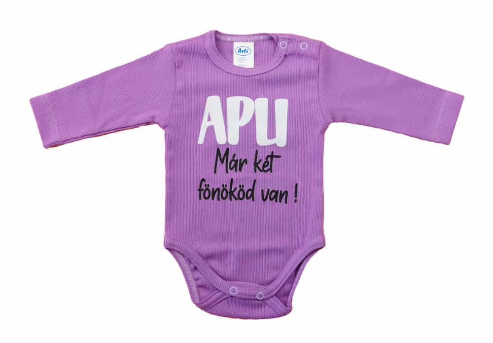 Feliratos rövid ujjú baba body Ezzel a vállon patentos baba bodyval a kisbabád mindig stílusos lesz. A body feliratos, ami egyszerre vicces és aranyos. A nikkelmentes patentoknak köszönhetően nem kell aggódnod az allergiás reakciók miatt. Gondosan tervezett és készített termék, így biztos lehetsz benne, hogy a legjobbat kapod. A minőségi magyar termék, ami tökéletes választás minden unisex babáknak. Tökéletes választás, ha szeretnél egy igazán minőségi és kényelmes ruhadarabot a babádnak. Minőségi magyar termék Anyaga: 90% pamut – 10% lycra Minőség: I. osztály