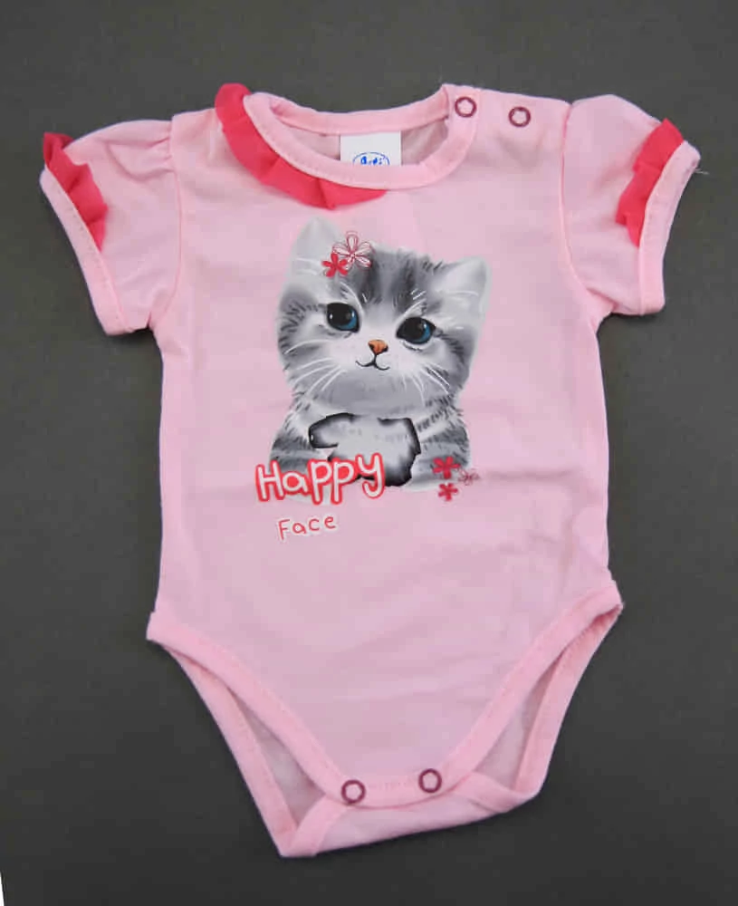 Öltöztesse be babáját ebbe a rózsaszínű, fodros rövid ujjú bodyba, amelyben igazán cuki lesz! A bodyn megjelenő cicás mintával mindenki szívébe belopja magát a kicsi. Az alapvető ruhadarab kiválóan kombinálható más ruhadarabokkal, így könnyedén variálható a szettje. A legkisebbek bőrének védelme kulcsfontosságú számunkra, ezért a body 100% pamutból készült, hogy a kényelmet és a bőrbarát érintést biztosítsa. Az egyszerű tisztításnak köszönhetően pedig a szülőknek is könnyebb dolguk lesz. Büszkék vagyunk rá, hogy termékünk magyar gyártású, garantáltan első osztályú minőségű. A body nikkelmentes patenttal készül, így az arra érzékeny babák sem fognak allergiás reakciót tapasztalni. Ezzel a bodyval a kicsi nem csak jól fog kinézni, de egészséges és boldog is lesz!