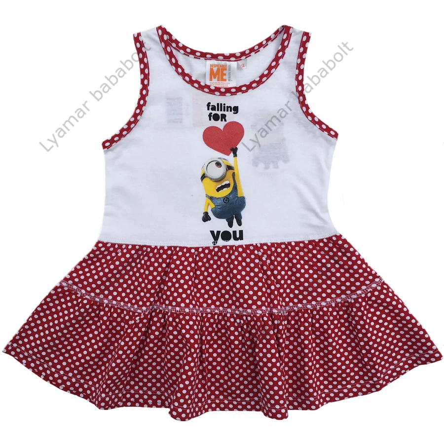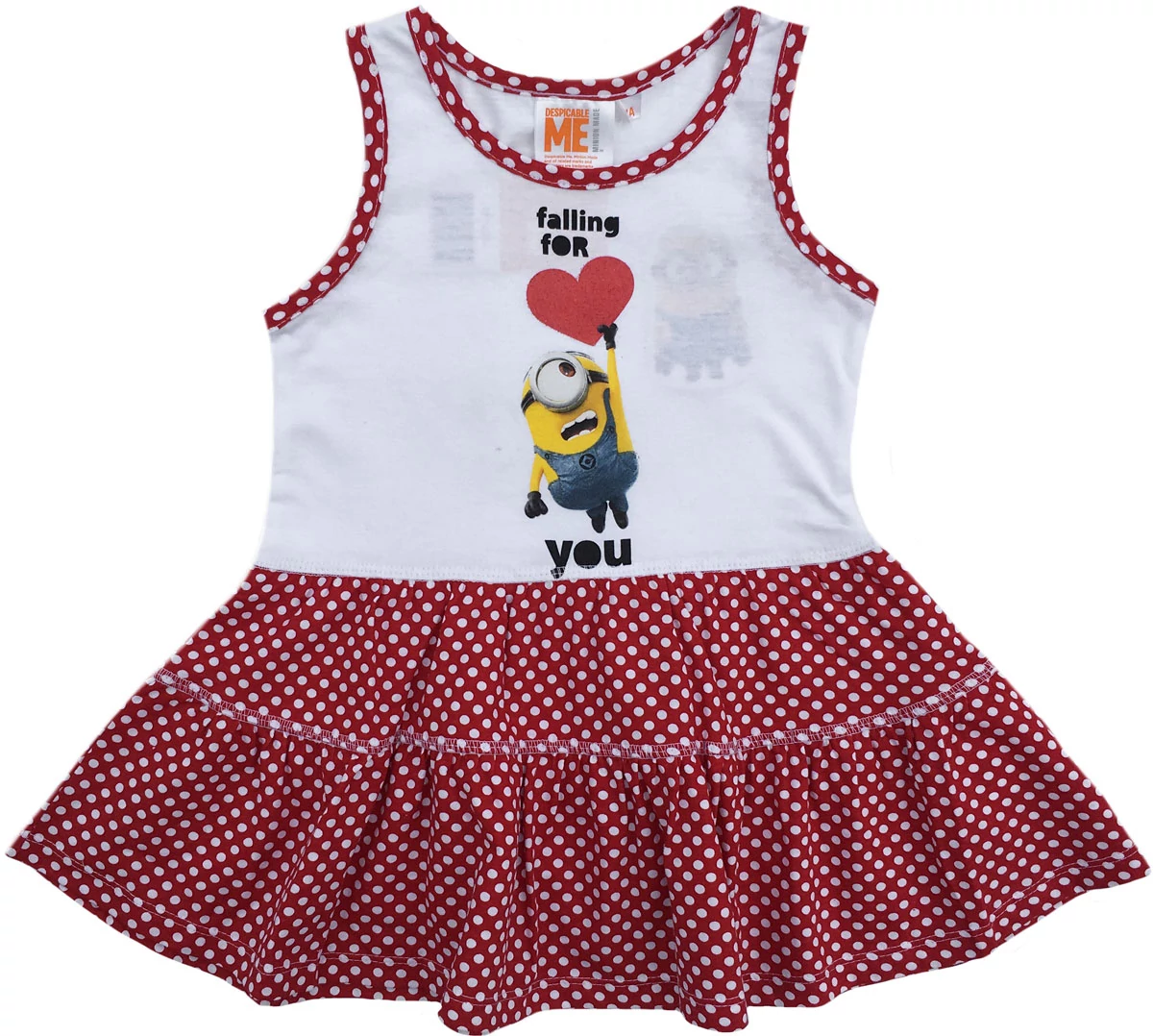 Gyerek ujjatlan ruha, szoknya, Minions. Gyönyörű mintázattal, tökéletes nyári viselet, finom pamut anyagának köszönhetően rendkívül kényelmes, jól szellőzik. Kíméletes mosás és vasalás kifordított állapotban.