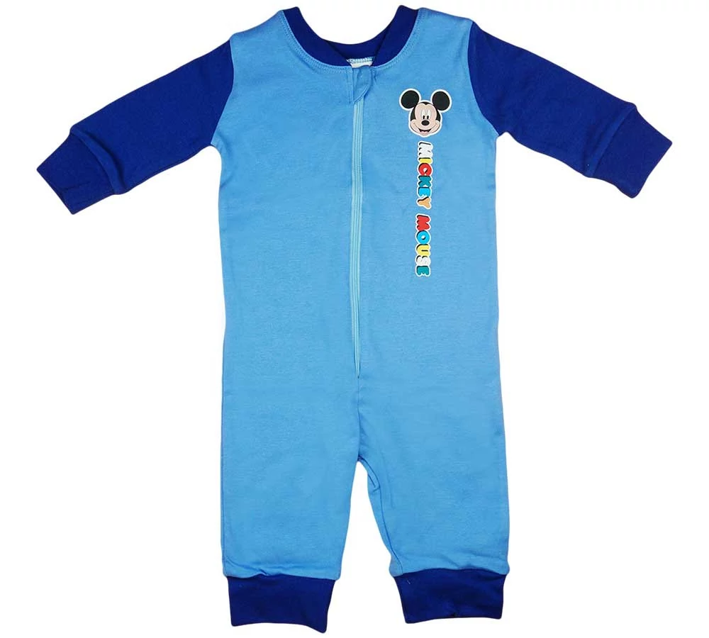 Gyerek pamut kisfiú pizsama overál, Disney Mickey karakterének anyagba nyomott, tartós mintájával díszítve. A pizsama minőségi, puha tapintású, bőrbarát pamut anyagból készült. A gyerek overálos pizsama jól mosható, szín- és formatartó, könnyen kezelhető. A Mickey-s pizsama overál nagyon praktikus éjjelre, hiszen ha kitakarózik a gyermek az éjszaka közepén, akkor sem fázik meg olyan könnyedén.