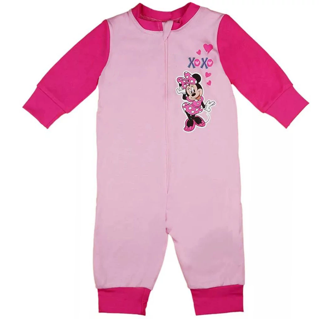 Gyerek pamut kislány pizsama overál, Disney Minnie egér karakterének anyagba nyomott, tartós mintájával díszítve. A pizsama minőségi, puha tapintású, bőrbarát pamut anyagból készült. A gyerek overálos pizsama jól mosható, szín- és formatartó, könnyen kezelhető. A Minnie-s pizsama overál nagyon praktikus éjjelre, hiszen ha kitakarózik a gyermek az éjszaka közepén, akkor sem fázik meg olyan könnyedén.