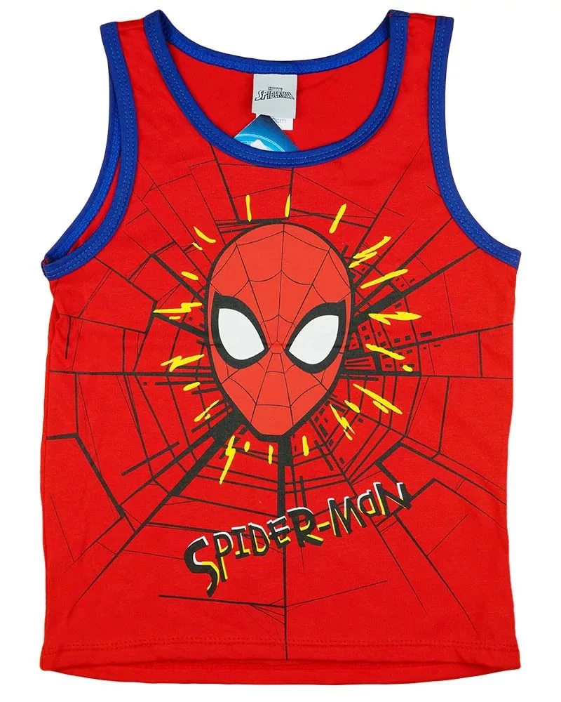 Pókember, Spiderman gyerek ujjatlan póló, fiú trikó. A gyerek trikó finom tapintású, bőrbarát, kényelmes pamut anyagból készült, mintázata anyagba nyomott, tartós nyomású. A fiú trikón Pókember szuperhős karaktere szerepel, azon részletgazdagon kidolgozott mintája látható.