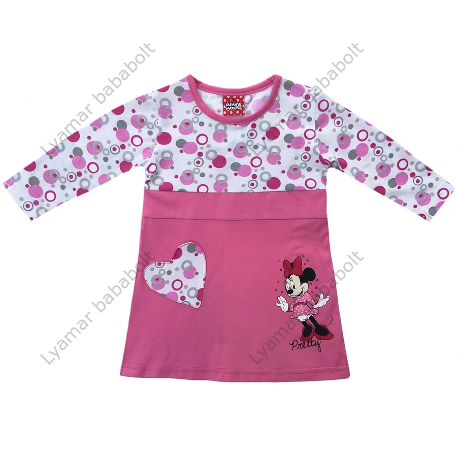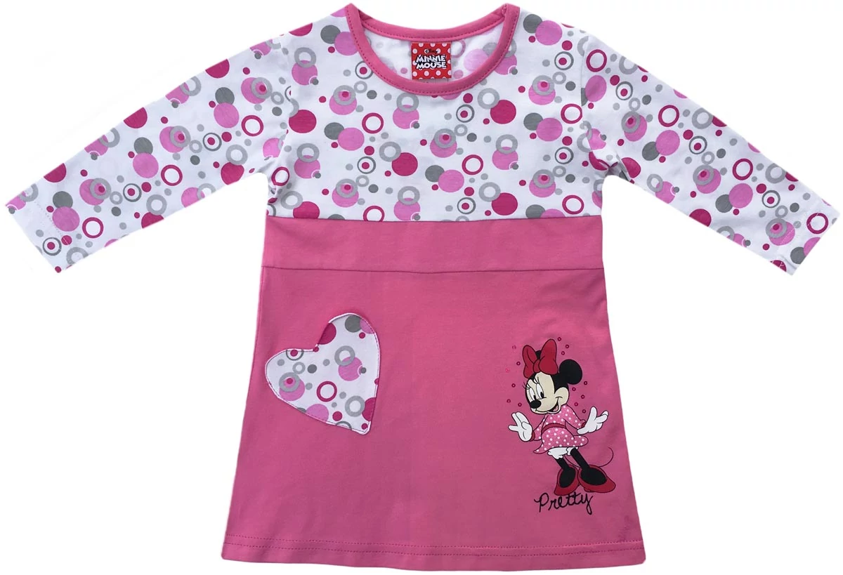 Szivecskés zsebes, pöttyös mintákkal díszített hosszú ujjú, Minnie ruha, melyet a gyönyörű Minnie egér díszít. Gyönyörű tavaszi,őszi darab.