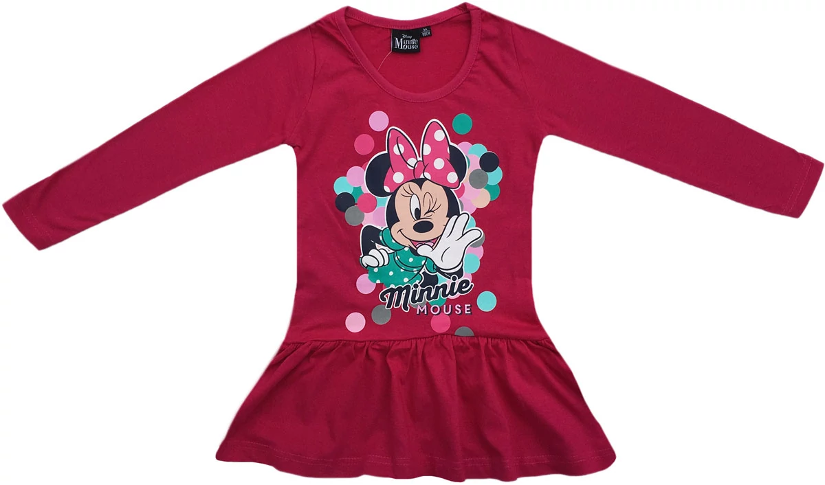 Disney Minnie hosszú ujjú pamut ruha, szoknya. A Minnie egér mintával díszített pamut ruha a gyermekek nagy kedvence lehet. Kíméletes mosás és vasalás kifordított állapotban javasolt.