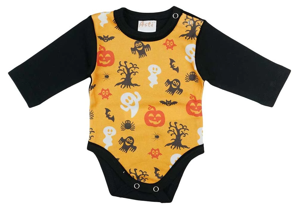 Ez a sárga hosszú ujjú baba body tökéletes választás a Halloween szezonra! Unisex designja révén mind a kisfiúk, mind a kislányok hordhatják. Különlegessége, hogy a bodyn csinos halloween minta díszeleg, ami igazán mókussá és ünnepivé varázsolja a viselőjét. A body vállán praktikus patentok találhatóak, amelyek megkönnyítik az öltözködést. De nem csak a küllemére és praktikumára figyeltünk: anyaga 100% pamut, amely kényelmes viselet a baba érzékeny bőrének. Minőségi magyar termék, amely az I. osztályú minősítést is elnyerte. A termék nikkelmentes patenttal készül, így az erre érzékeny babák számára is biztonságos választás, nem vált ki allergiás reakciót. Varázsoljuk ünnepivé a babázást ezzel a Halloween mintás bodyval!