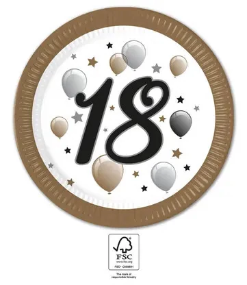 Happy Birthday 18 papírtányér 8 db-os 23 cm FSC