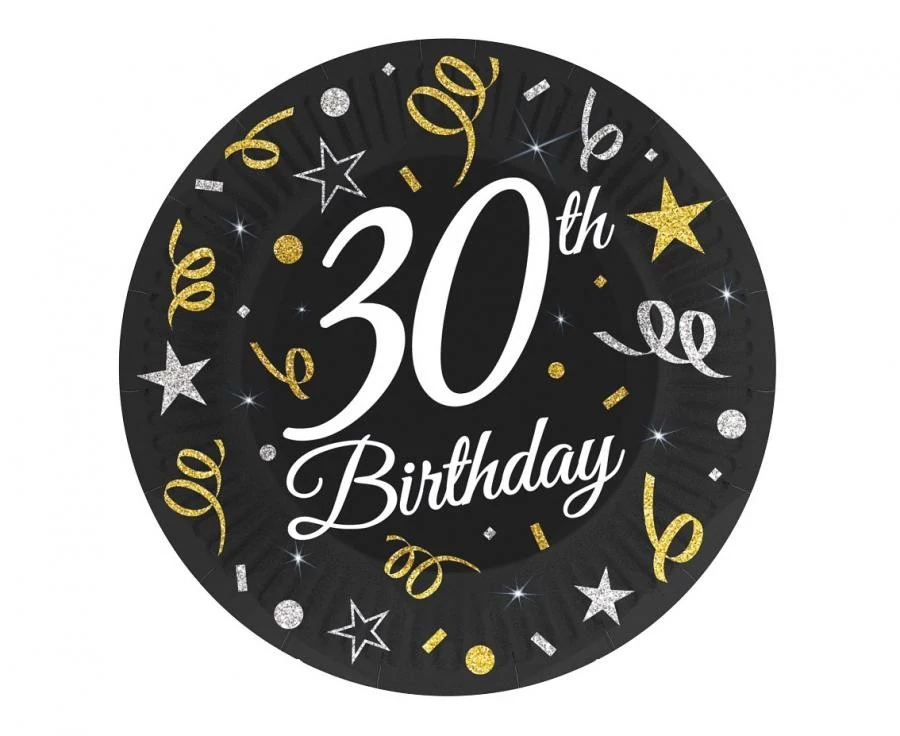 Happy Birthday 30 B&C papírtányér 6 db-os 18 cm