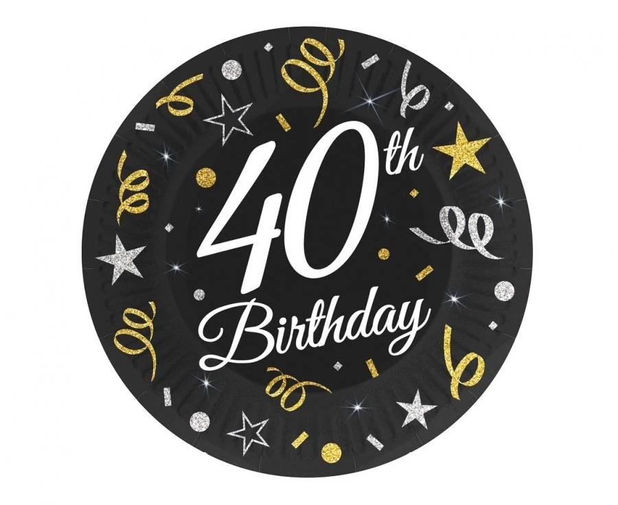 Happy Birthday 40 B&C papírtányér 6 db-os 18 cm