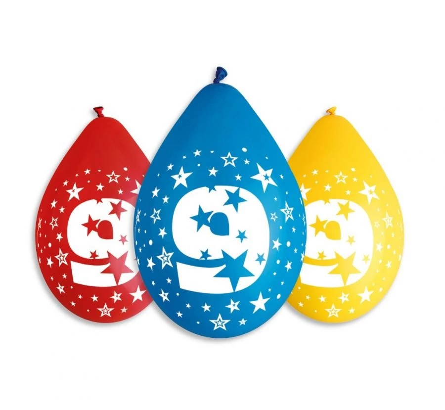 Happy Birthday 9 Star függő léggömb, lufi 5 db-os 12 inch (30 cm)
