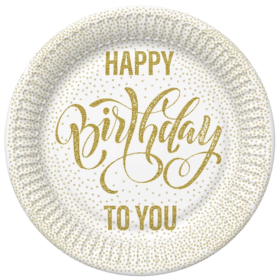 Happy Birthday Dotted Gold papírtányér 8 db-os 22,7 cm