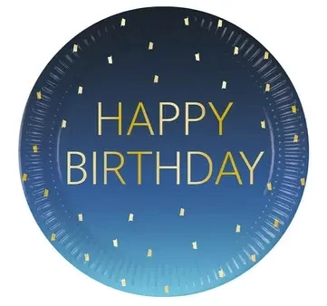 Happy Birthday Golden Blue papírtányér 8 db-os 23 cm FSC
