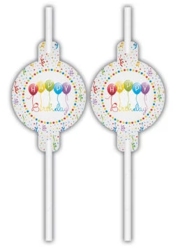 Happy Birthday Streamers papír szívószál 4 db-os szett