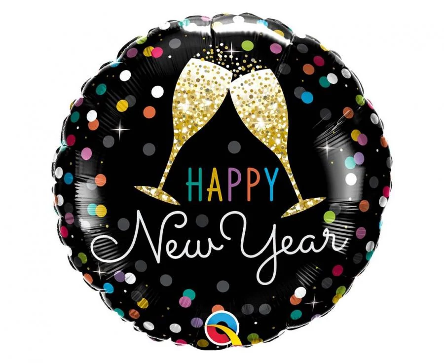 Happy New Year Pezsgős Poharak fólia lufi 46 cm
