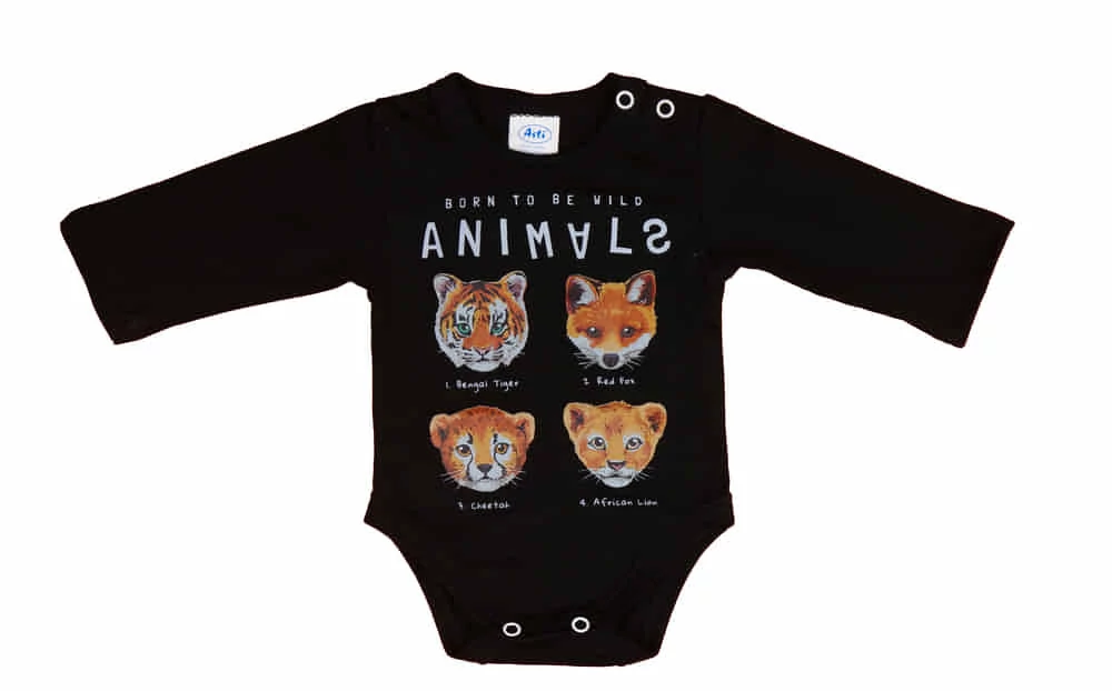 Hosszú ujjú baba body állatos mintával