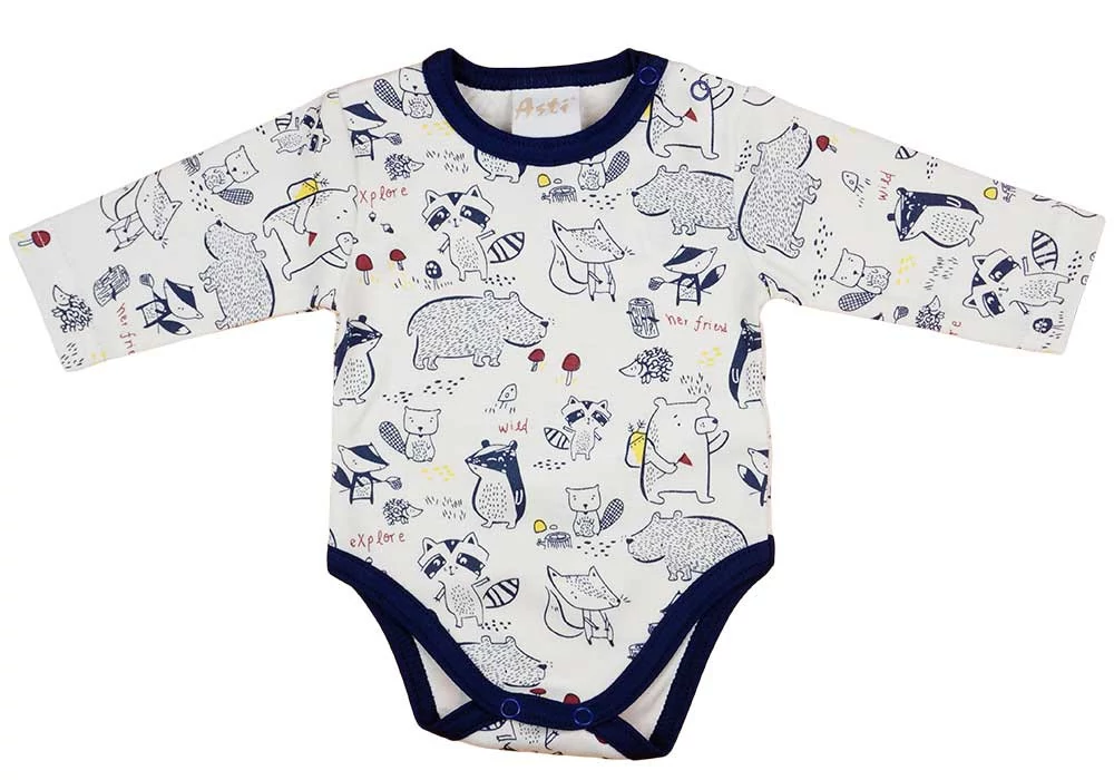 Fedezd fel ezt a bájos, hosszú ujjú baba bodyt, melyet játékos állat mintákkal díszítettünk. A vállon található patentok segítségével könnyen fel- és le lehet venni, így a pelenkázás sem lesz többé macera. A 100% pamut anyag garantálja a kényelmet és a puhaságot, míg a nikkelmentes patent gondoskodik arról, hogy a babád bőre ne irritálódjon. Ezzel a minőségi magyar termékkel minden nap különlegessé válik. Ajándékozd meg babádat ezzel a vidám, állatos mintás darabbal!