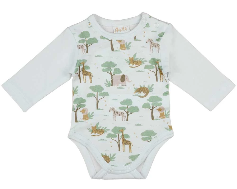 Hosszú ujjú baba body állatos mintával