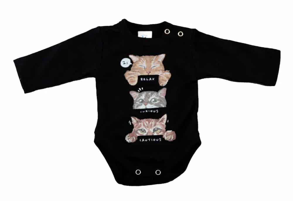 A hosszú ujjú baba body cicás mintával, fekete színben, nem csak kényelmes és praktikus, hanem igazán cuki is! A könnyed cicás minta lopja be magát minden kisbabás család szívébe. Ez a kedves cica mintával díszített body minőségi, 100% pamut anyagból készült, ami formatartó, színtartó és jól bírja a gyakori mosást is - vagyis minden szülő álma! A vállán található patentok megkönnyítik a baba öltöztetését, míg a lába közötti patentos megoldás a gyors és egyszerű peluscserét teszi lehetővé. Ez a minőségi magyar termék kiváló választás minden kisbabának, hiszen nikkelmentes patenttal készült, így az arra érzékeny babáknál sem vált ki allergiás reakciót. Szeretnéd, ha babád a legjobb minőségű, legkényelmesebb és legcukibb ruhában töltötte napjait? Akkor ez a hosszú ujjú baba body cicás mintával a tökéletes választás!